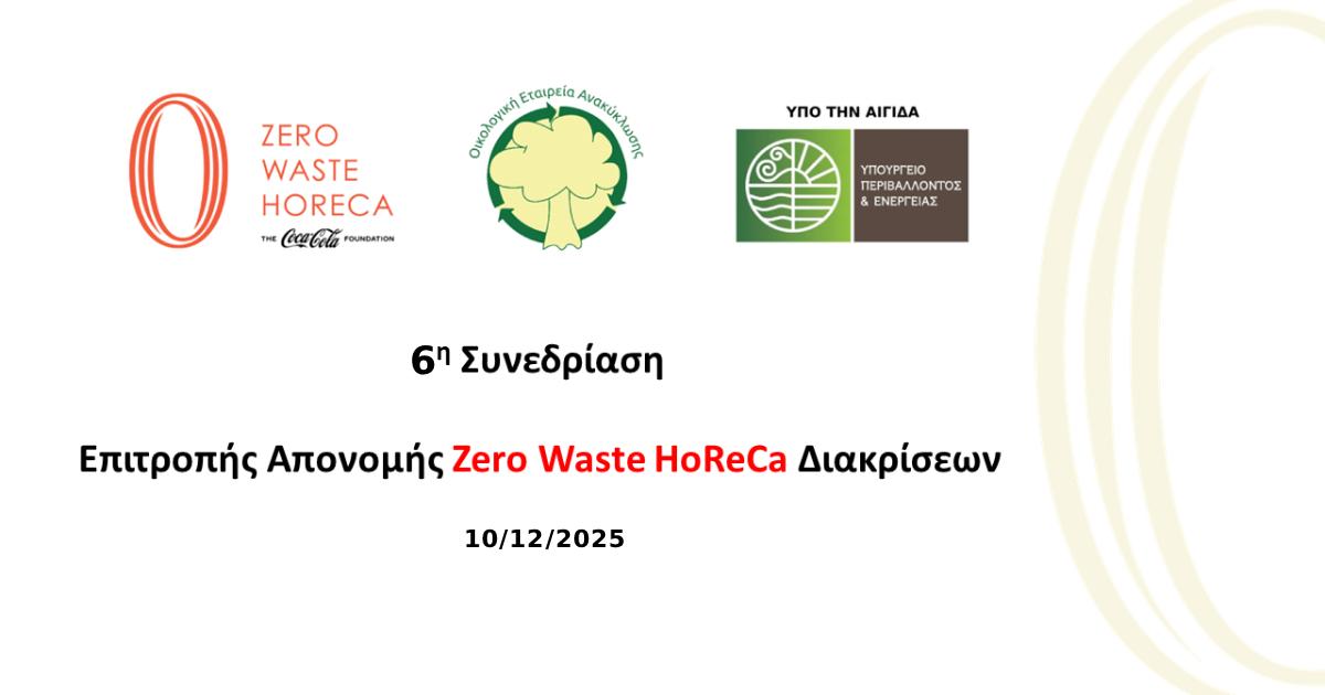 Στις 10/12/2025 πραγματοποιήθηκε η 6η Συνεδρίαση της Επιτροπής Απονομής ZERO WASTE HORECA Διακρίσεων και απένειμε 165 ZERO WASTE HORECA ΔΙΑΚΡΙΣΕΙΣ (ΧΡΥΣΕΣ:7, ΑΡΓΥΡΕΣ:34, ΧΑΛΚΙΝΕΣ:124) από τις οποίες οι 154 είναι Διακρίσεις νέων επιχειρήσεων (τις οποίες μπορείτε να δείτε εδώ: 154 ΝΕΕΣ ZERO WASTE HORECA ΔΙΑΚΡΙΣΕΙΣ), ενώ οι 11 αφορούν σε αναβαθμίσεις Διακρίσεων (τις οποίες μπορείτε να δείτε εδώ: 11 ΑΝΑΒΑΘΜΙΣΕΙΣ ZERO WASTE HORECA ΔΙΑΚΡΙΣΕΩΝ).
